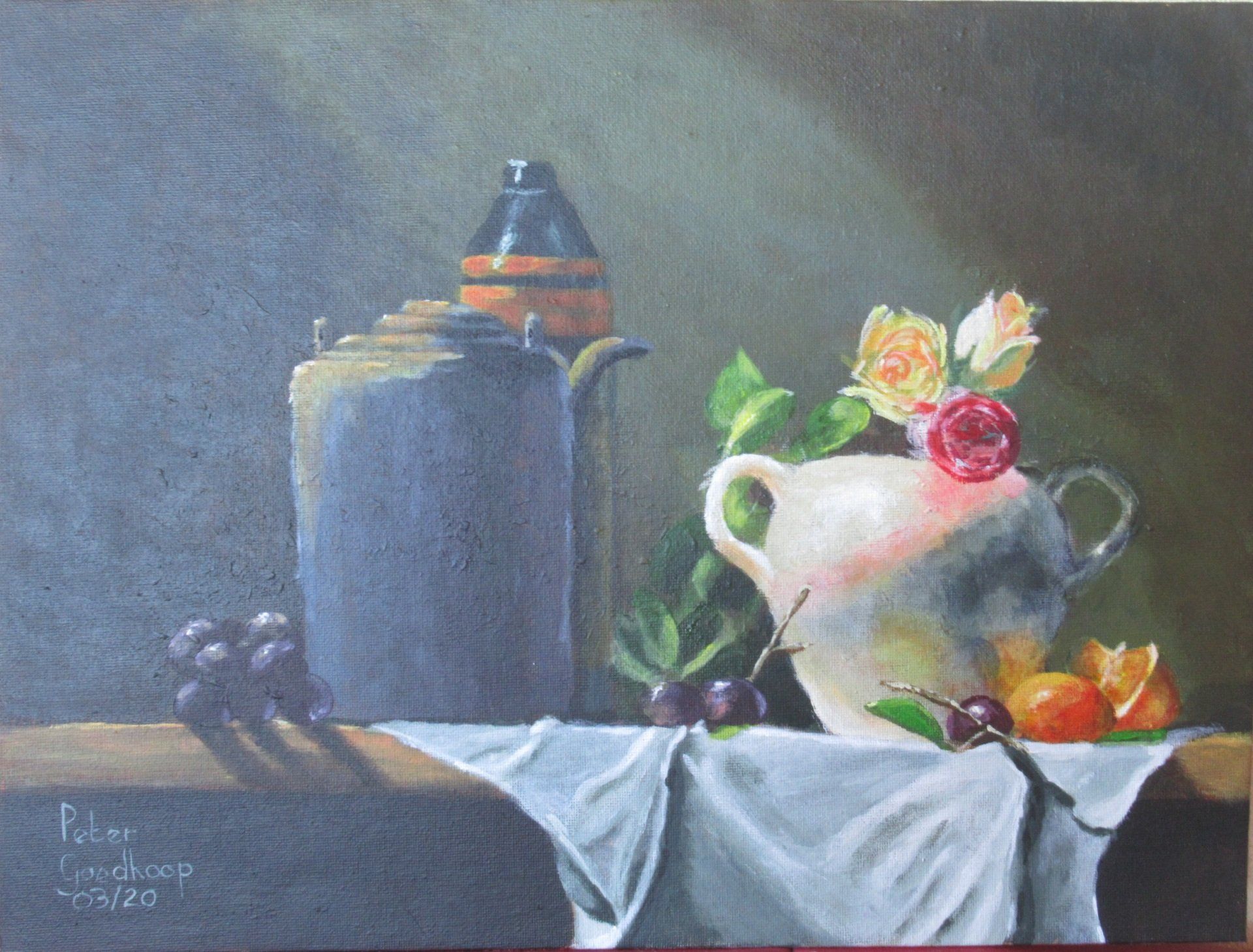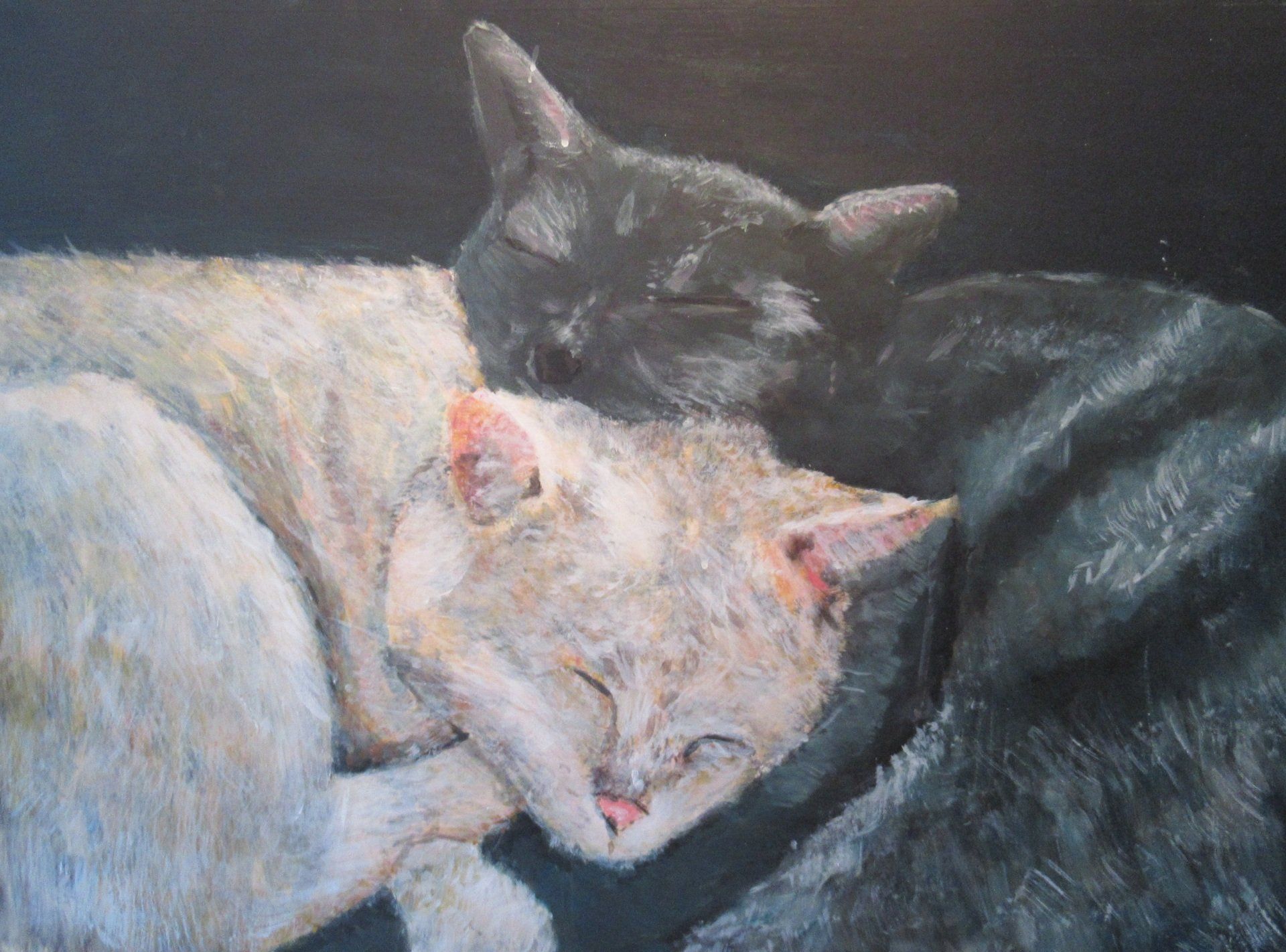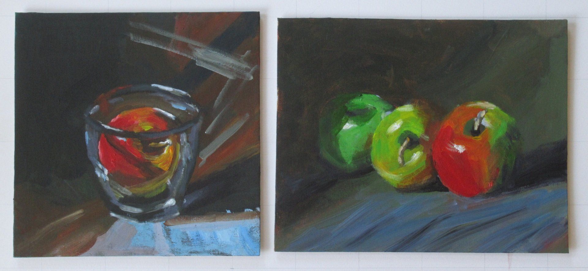 acryl op kartonnen paneel, 25 x 25 cm en 24 x 30 cm