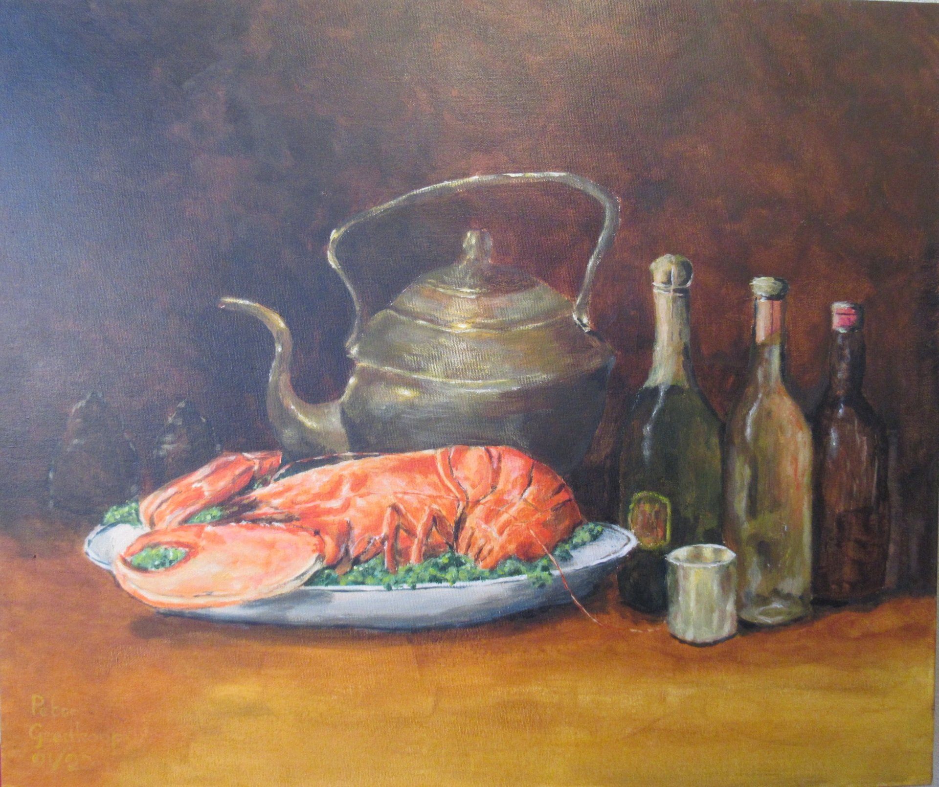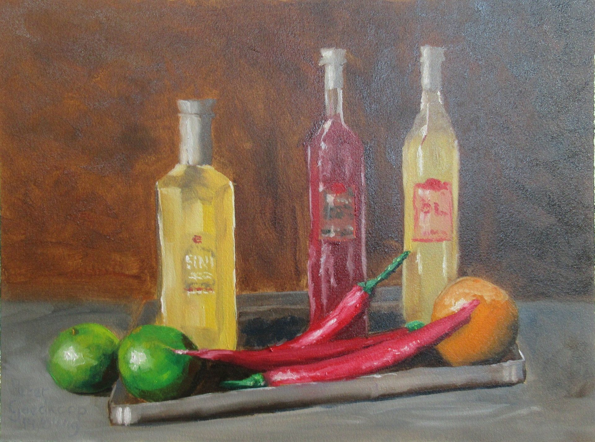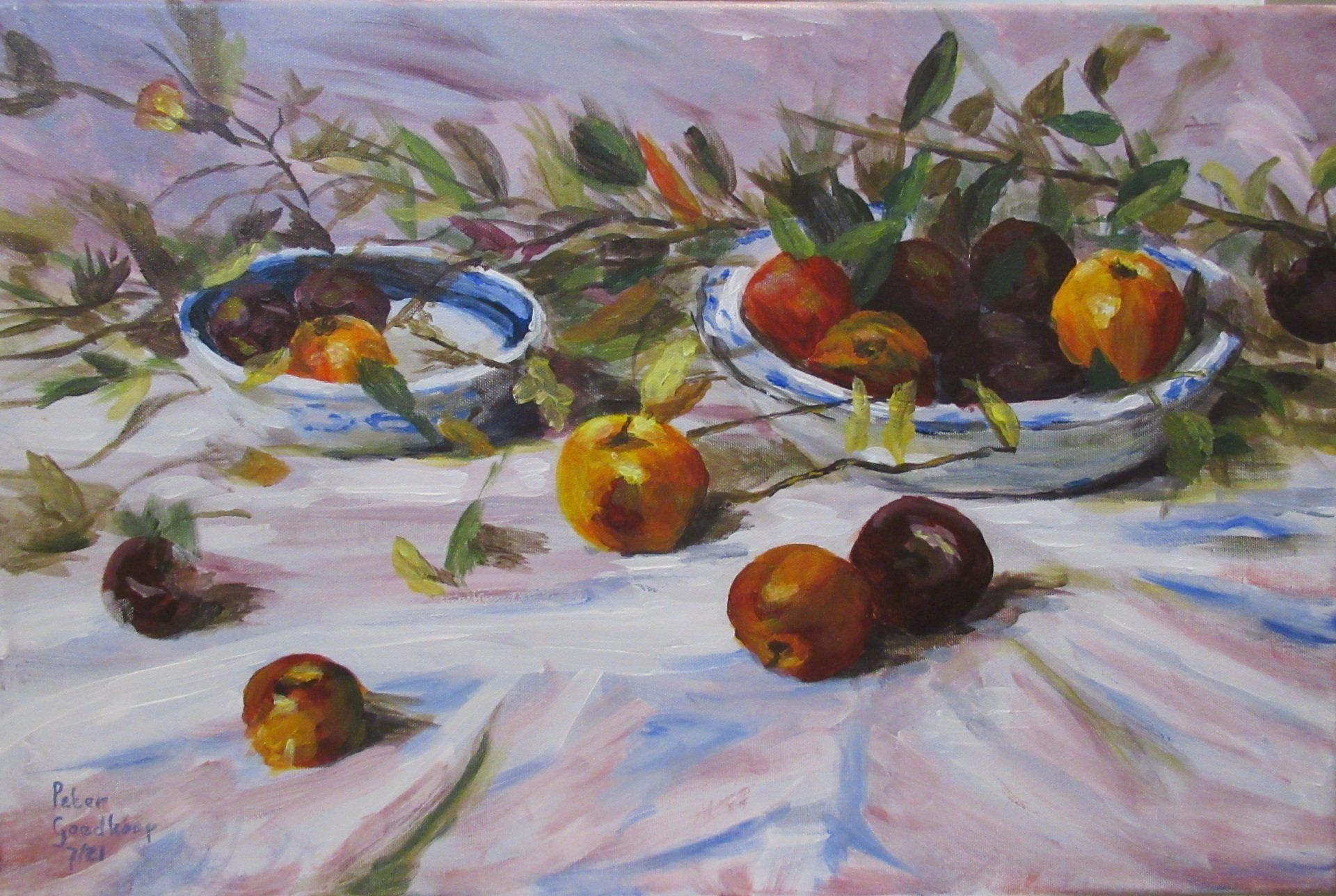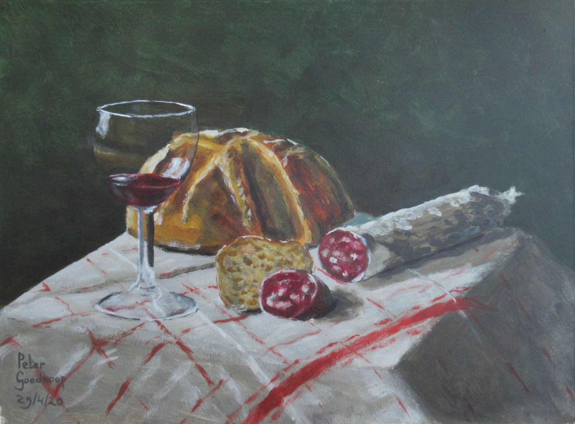 acryl op kartonnen paneel, 25 x 25 cm en 24 x 30 cm